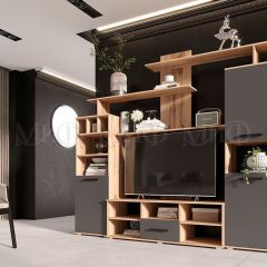 МИНИ-2 Гостиная (МДФ) Графит/Дуб Крафт